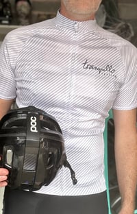The design is a white/grey blurred line pattern with Tranquillo logo on left breast and Ciao! on the rear hem. It's made from breathable and wicking fabric which transports moisture away from your skin keeping you cool and dry. The quick dry, easy-care materials help regulate body temperature ensuring you stay comfortable no matter how long you are in the saddle. The print is a premium sublimation print that withstands fading ensuring your garment looks and feels better for longer. There are 3 rear pouch pockets and 1 zipper compartment for your phone, keys, snacks and other cycling essentials. There's a silicone gripper along the rear hem to keep things in place, a chin guard tab at the top of the zip, and a flash of reflective material on the back to ensure you stay seen.
